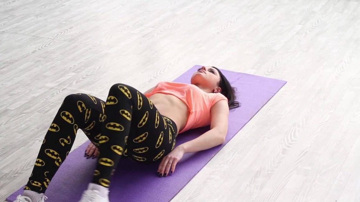 Самое универсальное и весьма действенное движение, чтобы накачать пресс дома девушке. Для выполнения нужен свободный участок пола и небольшой коврик (можно выполнять и без него). Отлично прорабатывает верхнюю часть пресса.