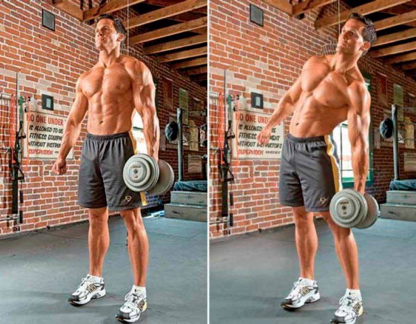 Оба упражнения с гантелями для мужчин отлично подходят для нагрузки бицепса. При выполнении повторений ладони должны разворачиваться наружу при каждом подъеме.