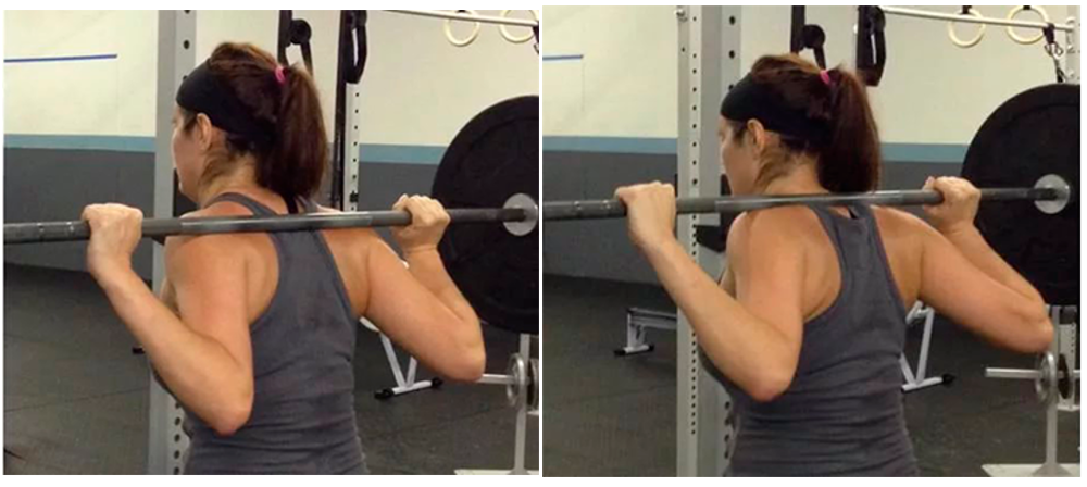 - Хват – чуть шире плеч, цель – зафиксировать штангу на плечах максимально жестко;