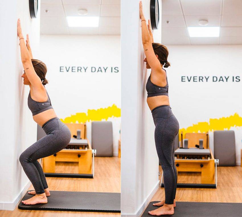 - Отступите ногами примерно на полметра, все еще касаясь стены корпусом.