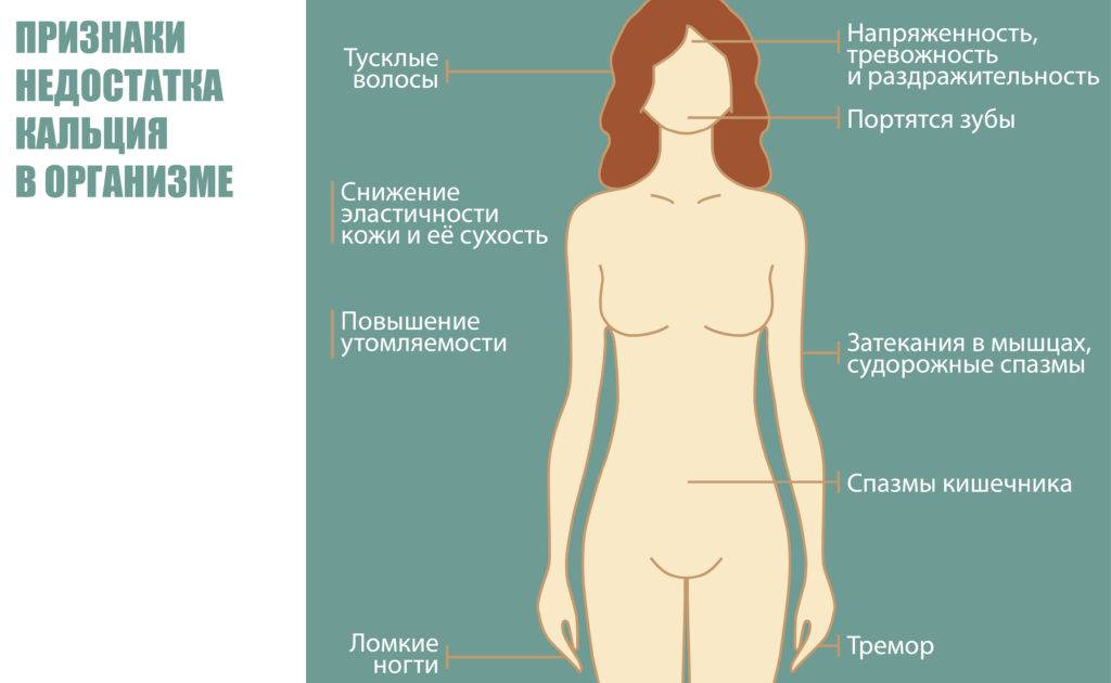 Недостаточное содержание кальция в продуктах питания ставит под удар многие системы нашего организма. На его дефицит чутко реагирует кровь, в которой он обязан присутствовать в строго очерченных количественных пределах: 2,1–2,6 ммоль/л. Выход за эти узкие рамки несёт угрозу жизни. Поэтому при дефиците алиментарного, то есть поступающего с пищей, кальция включается механизм перекачивания солей кальция из костной ткани, зубов, волос и ногтей в кровь.