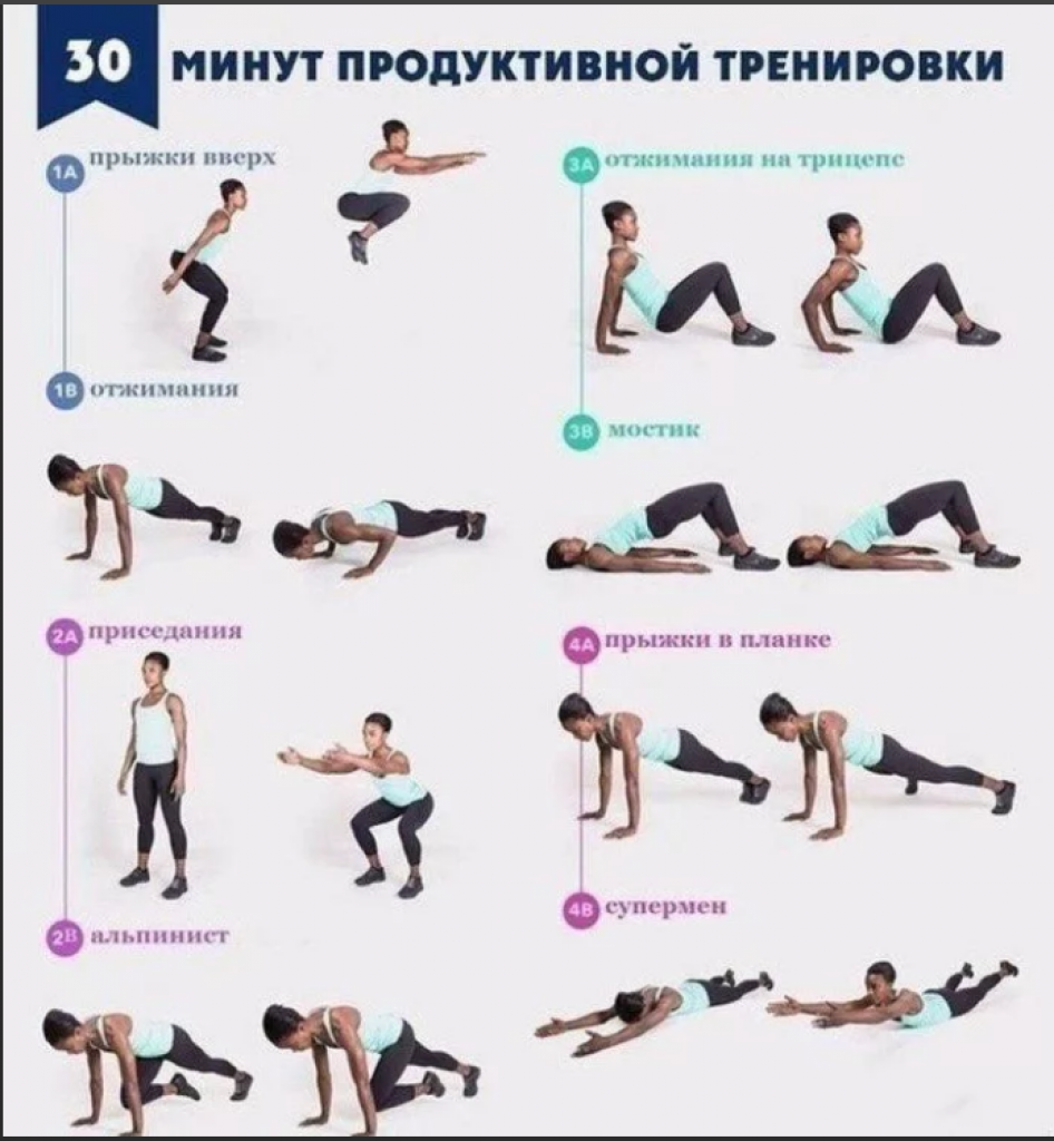 Обязательно следите за правильной техникой выполнения упражнений. Увеличивать темп выполнения упражнения и количество повторов стоит, только если вы убедились, что выполняете упражнение правильно.