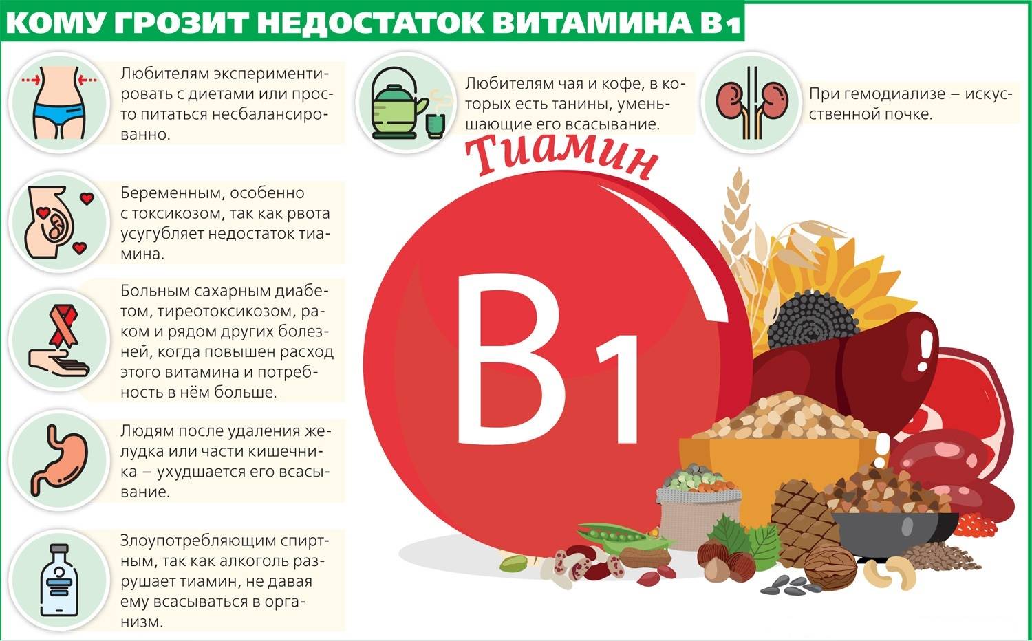 Магний хорошо сочетается с тиамином и помогает его активизировать. Длительное лечение антибиотиками и чрезмерное употребление кофе, чая и других кофеинсодержащих продуктов негативно влияет на усвоение витамина и со временем приводит к его дефициту.