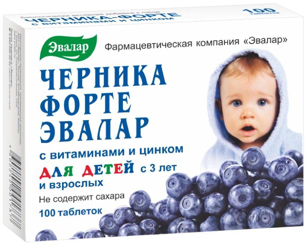 Комплексный препарат содержит экстракт черники, лютеин и бета-каротин, витамины А, С, Е, В2. Рекомендуется для устранения усталости глаз при высоких зрительных нагрузках, профилактики близорукости и остановки ухудшения зрения.