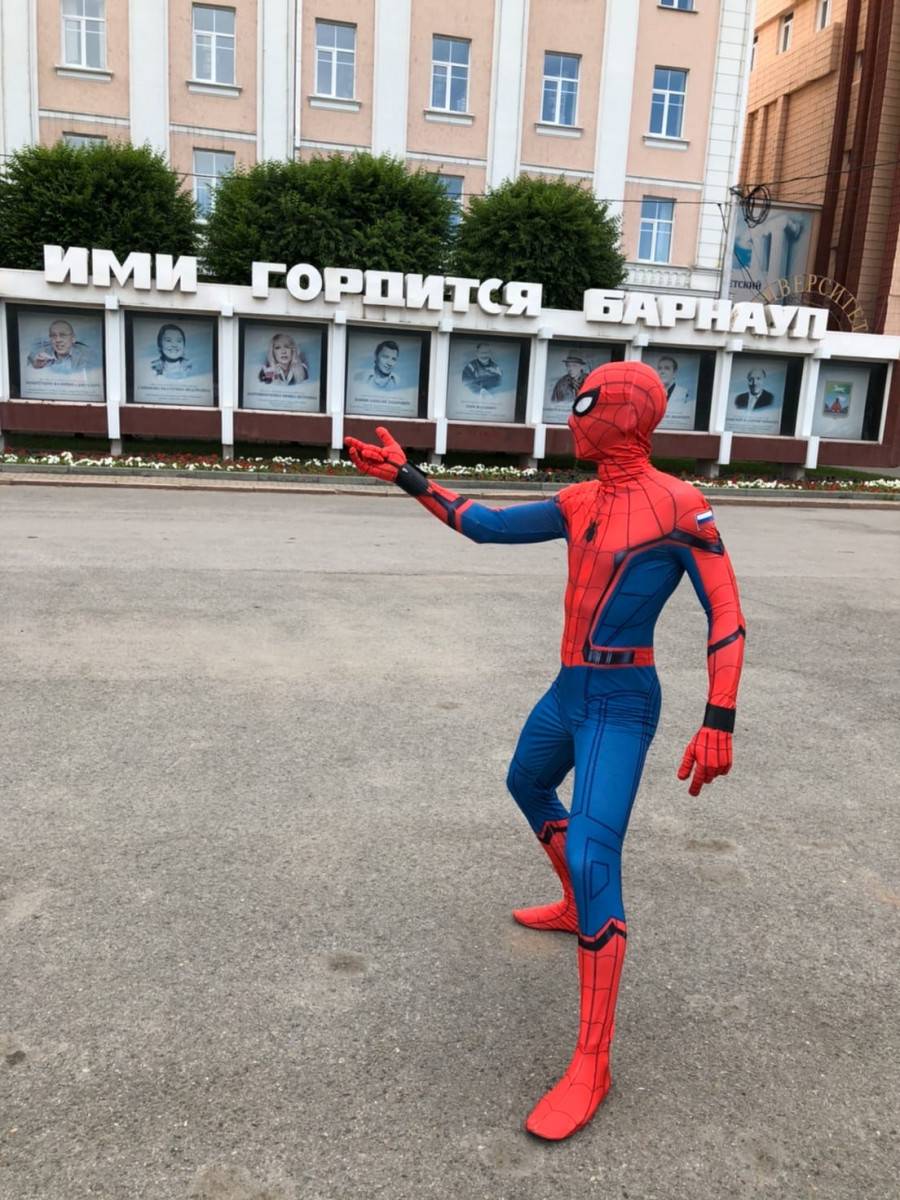 Чем же занимался барнаульский Человек-паук? Раздавал на улицах чай,засыпал корейской лапшой ямы на дорогах,мыл окна автобусов и маршруток и даже заматывал людей пищевой пленкой. Образ паука в основном веселит зрителей.
