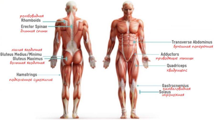 | Стабилизаторы | Разгибатели спины, трапециевидные, отвечающие за подъем лопатки, передние большеберцовые, средние ягодичные, малые ягодичные |
