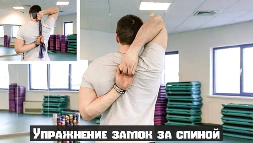 Упражнение замок, требует достаточной гибкости от атлета. При его выполнении, мы растягиваем переднюю головку дельтовидных мышц. Основная задача соединить руки между собой за спиной в замок. Но не каждому данная задача может показаться посильной. Поэтому, на начальном этапе можно использовать полотенце или жгут, за края которых мы будем держаться.
