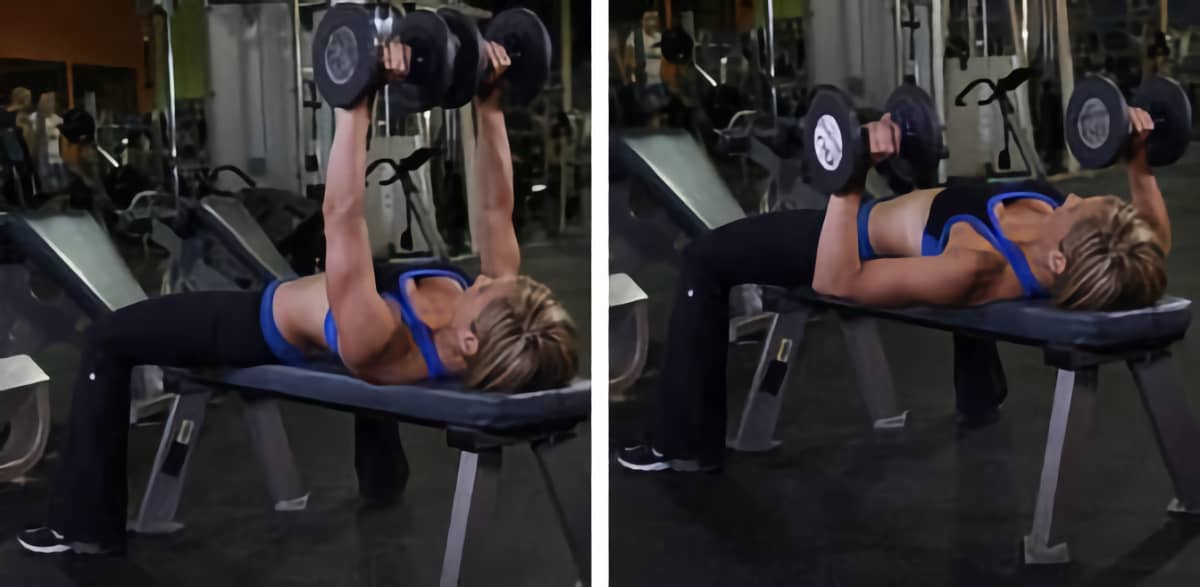 №3. Сведение/разведение гантелей лежа на горизонтальной скамье