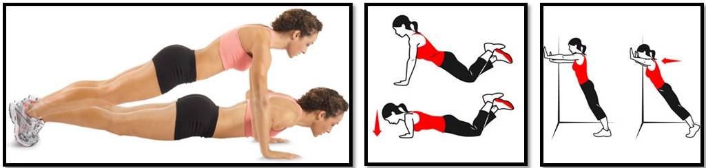 Упражнение с собственным весом тела. Наилучший эффект дает при соблюдении классической техники. Но если вы начинающая спортсменка, можете отжиматься с упором коленей в пол.
