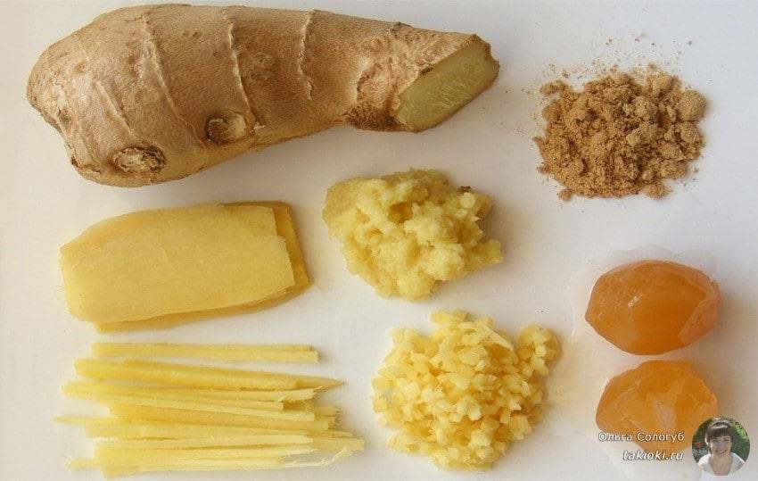 - промытый и очищенный имбирный корень нужно порезать тонкими ломтиками или потереть на мелкой тёрке;
