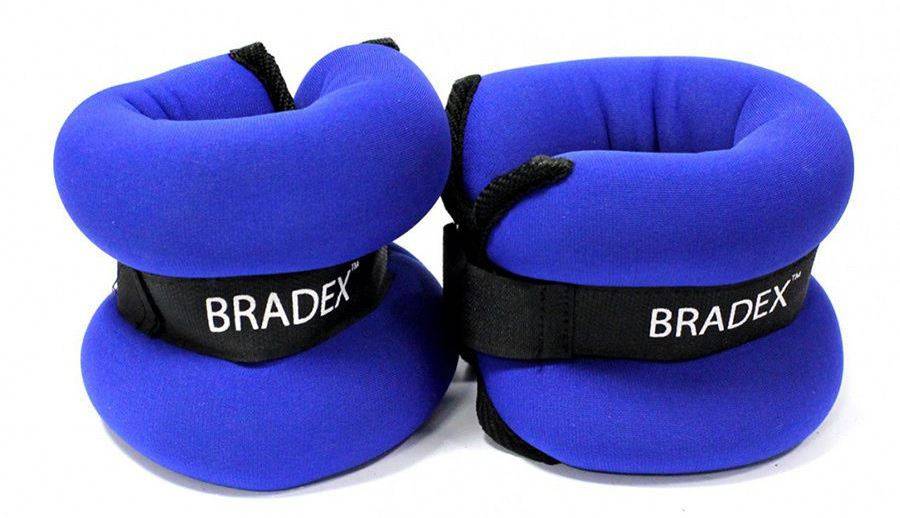 Представляет собой мешочек, наполненный сыпучими материалами, металлическими шариками. Вес такой модели составляет 1,5 кг, центральная часть грузов оснащена лентами с липучками. Наружный материал (нейлон и ПВХ) отличается прочностью, швы и строчки надежные, выполнены аккуратно. Подходят для создания дополнительной нагрузки во время выполнения таких упражнений, как приседания, наклоны, махи, подъемы и выпады. Кроме этого, девайсы «Bradex» эффективны для занятий бегом. Модель понравится новичкам и продвинутым спортсменам, желающим разогреть мышцы перед основной тренировкой. Эти утяжелители также рекомендованы для аэробных нагрузок, силовых, циклических тренировок. Хорошо укрепляют внутреннюю поверхность бедер. Средняя стоимость составляет – 590 руб.
