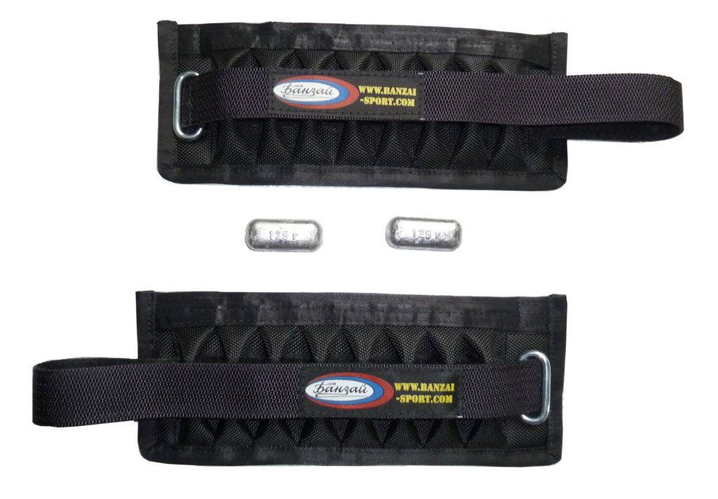 Этот девайс подходит для домашних занятий спортом, а также фитнес-тренировок в зале. Специальные металлические грузы позволяют произвести точную регулировку. Внешняя сторона манжеты изготовлена из плотной и прочной синтетики. Внутри вшит уплотнитель. «Банзай» крепится на голени, стропы утяжелителя затягиваются при помощи ремешка. Модели, вес которых не превышает 2 кг, подходят для бега, игровых занятий, тренировок на скорость. Манжеты массой свыше 2 кг рекомендованы для фитнеса в тренажерном зале, совершения махов, прокачки мышц ног. Что касается тренировок в воде, для них лучше всего подходят модели, оснащенные грузами. Средняя стоимость составляет – 9 640 руб.