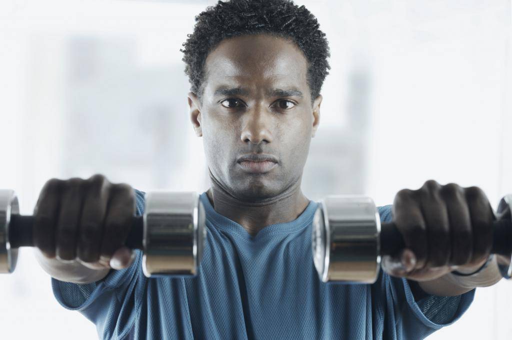 Рабочий вес играет большую роль при работе с базой. Нужно приложить достаточно усилий, чтобы мышцы получили повреждение. Именно процесс гиперкомпинсации, во время которого разрывы становятся толще и сильнее и способствуют прокачке. Поэтому нужно брать тяжелые гантели.