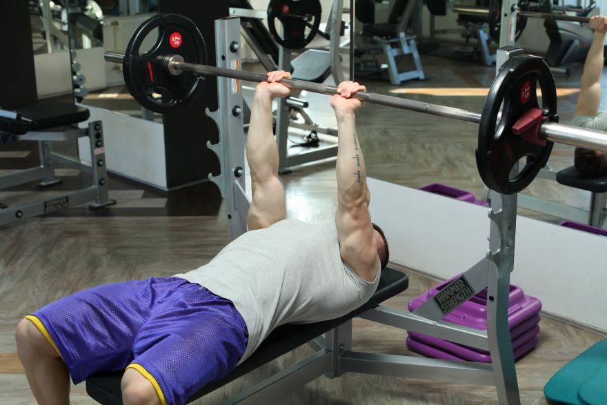 Примерно в середине процесса выполнения жима лежа начинают усиленно работать трицепсы. Эти мышцы толкают штангу к верхней точке упражнения, так что сила трицепса – особенно его длинной головки – действительно необходимость для выполнения жимов с большим весом.
