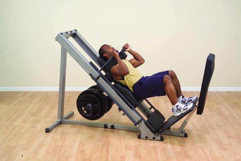Также надо помнить о технике выполнения: ни в коем случае не разгибать колени полностью и не отрывать пятки от платформы, а поясницу от спинки