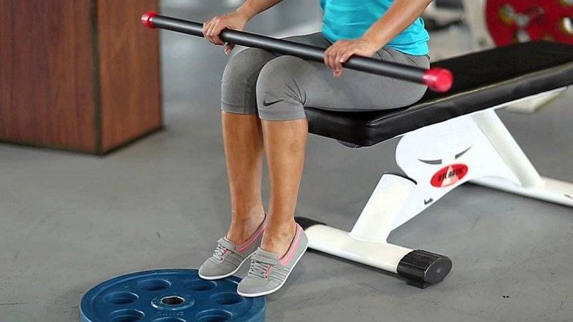 Можно использовать гантели или штанги. С дополнительным весом хватит 2 подхода по 15 повторений.