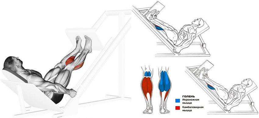 Подъемы на носки в тренажере для жимов ногами — мышцы