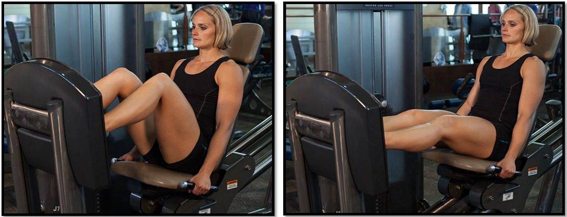 1. Сядьте в тренажер для жимов ногами и плотно прижмите ягодицы и поясницу к сиденью.