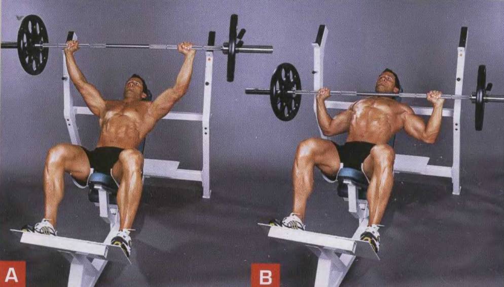 Многие делают это упражнение, чтобы подкачать верхнюю часть груди. Но вы же не можете изолировать какую то конкретную часть мышц. Грудная мышца – двуглавая мышца, онда часть которй присоеденяется к ключице, а другой – к ребрам. Они всегда работают вместе какой бы жим вы не делали бы, у вас не получится изолировать одну из них.